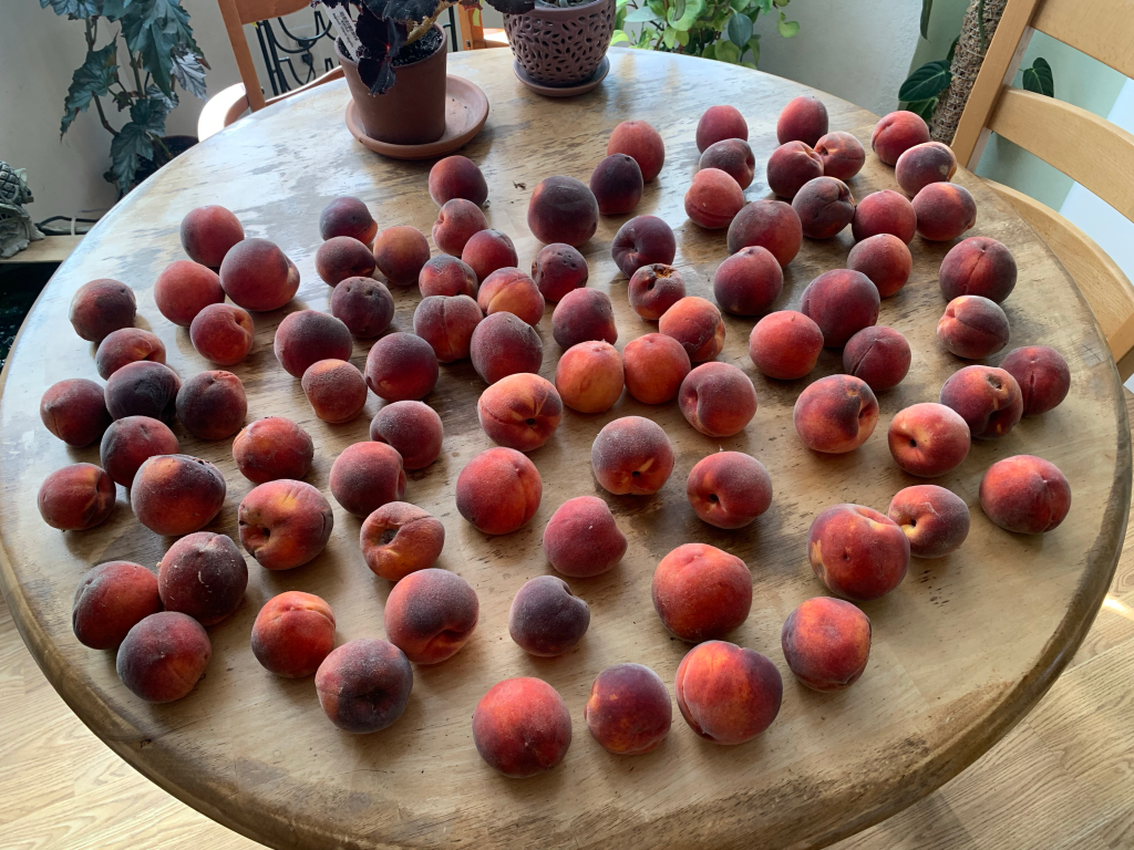 Here in Northern California, we are entering the Fall season. The light has subtly changed, nights and mornings are getting a little cooler, and the first leaves are starting to change color. Now is the time to harvest and put away food for the winter. While several crops have been disappointing (another failed okra crop, for example) we’ve been lucky to have a good season for many things, including our O’Henry peaches. Our bellies are full from eating so much fresh fruit, but we are also busy putting it away via canning, freezing, and even a little drying. Sometimes it feels a little overwhelming to carve out time for these things during a busy day. But a mixed fruit smoothie in December or a warm bowl of canned peaches in January are special treats and worth the effort. Now is also a great time for friends and family to drop by the garden, as it allows us to share some of our favorite things with our loved ones. And while a garden can certainly be enjoyed alone, it is even better when shared.